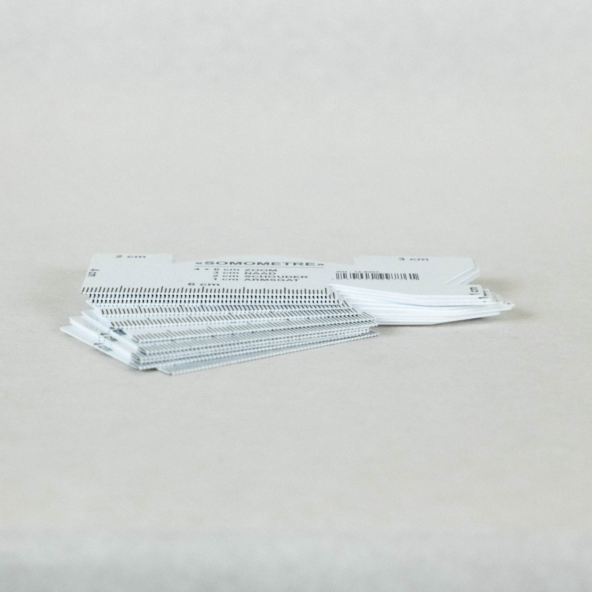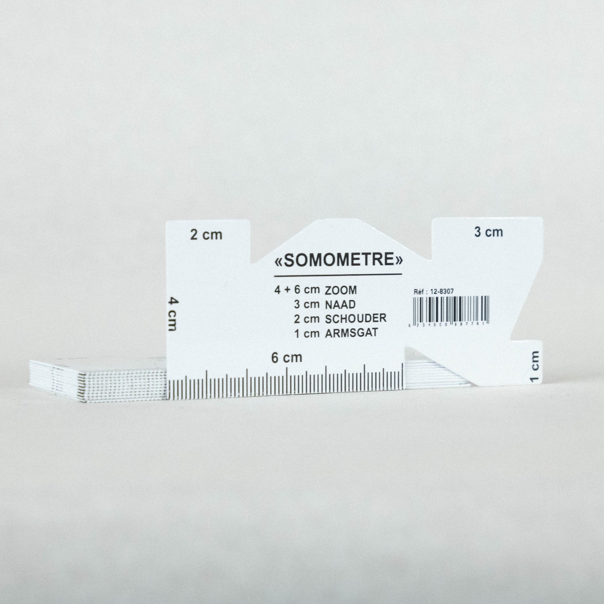 Le somomètre est un petit outil, ici en plastique, qui permet de mesurer les valeurs de couture d'un ouvrage. C'est une jauge renseignant plusieurs valeurs; en général: 1 cm, 1,5cm, 2cm, 3cm, 4cm, 6 cm. Cette petite latte permet de mesurer facilement des ourlets.