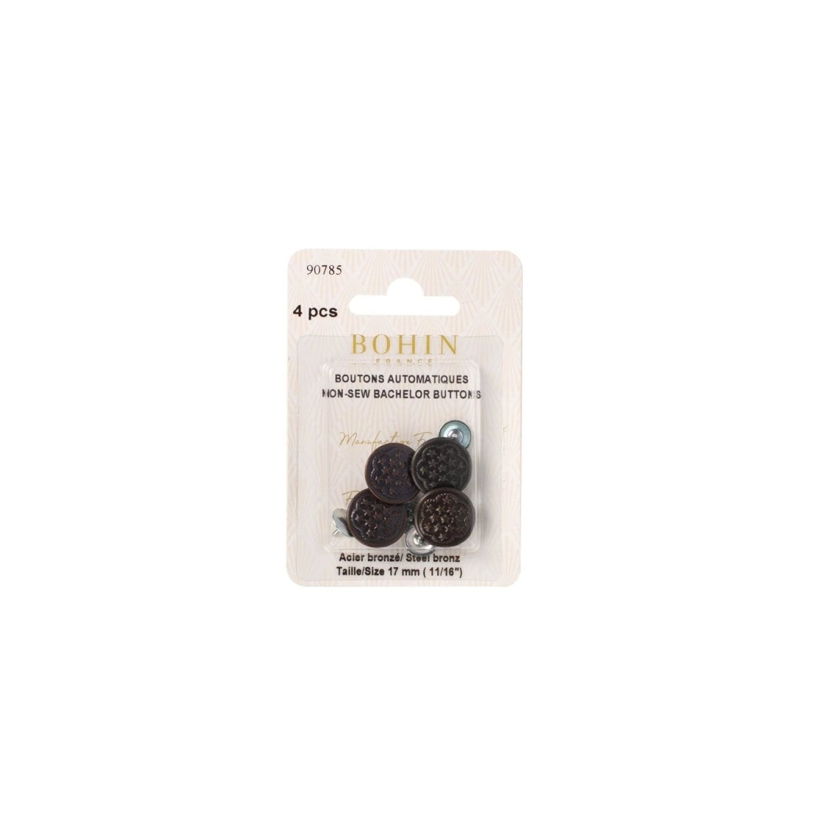 4 boutons couleur bronze, diamètre 17 mm.