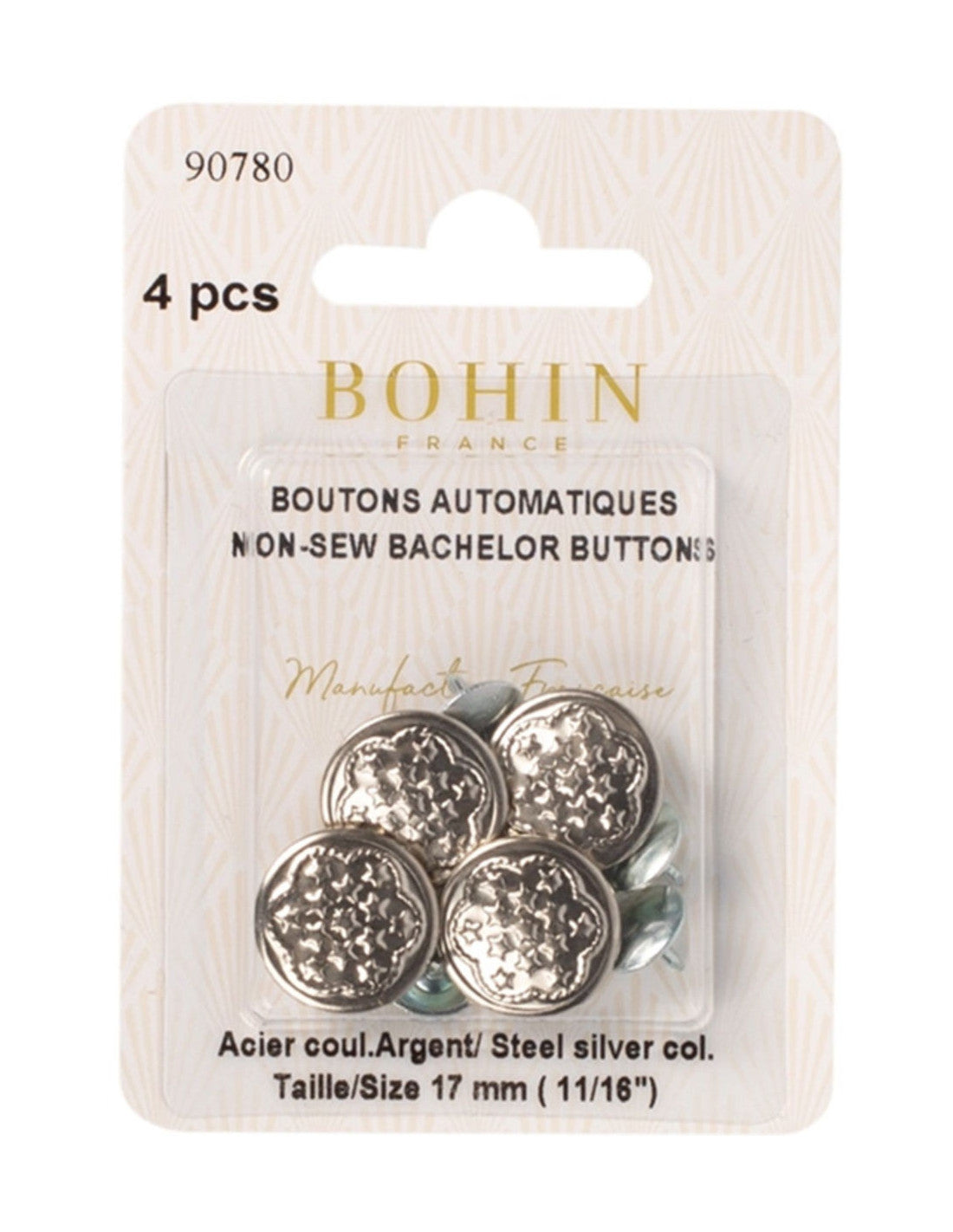 Oups, votre bouton de jean a sauté ! Il vous faut le remplacer et vite. Les boutons pour jeans métalliques BOHIN vous permettront de remplacer très facilement les fermetures de vos pantalons, notamment les jeans. Nul besoin de savoir coudre puisqu'il vous suffira de percer l'envers de votre ""ceinture"" avec le clou fournis à cet effet et de clipser le bouton sur l'endroit dans le clou.