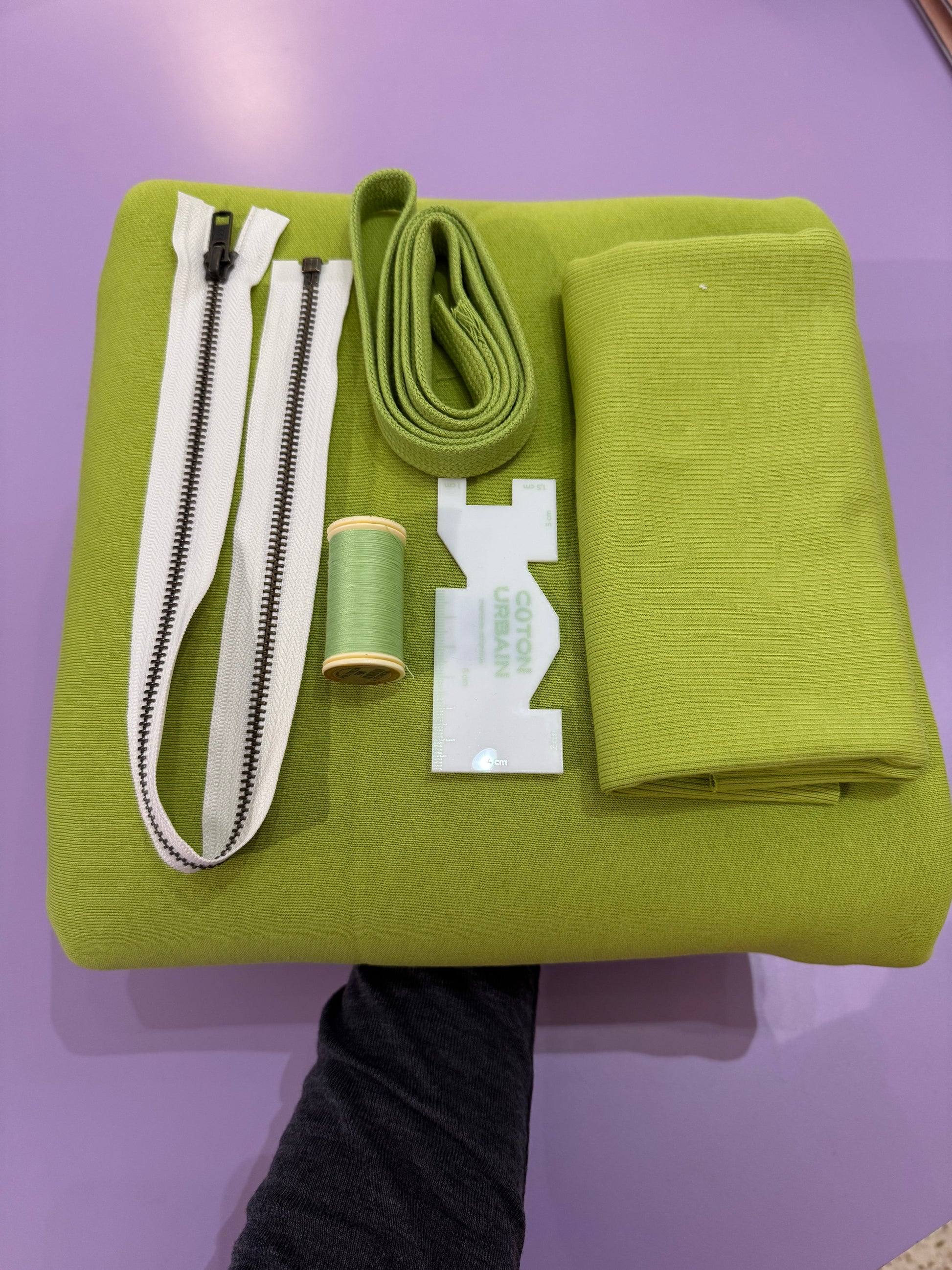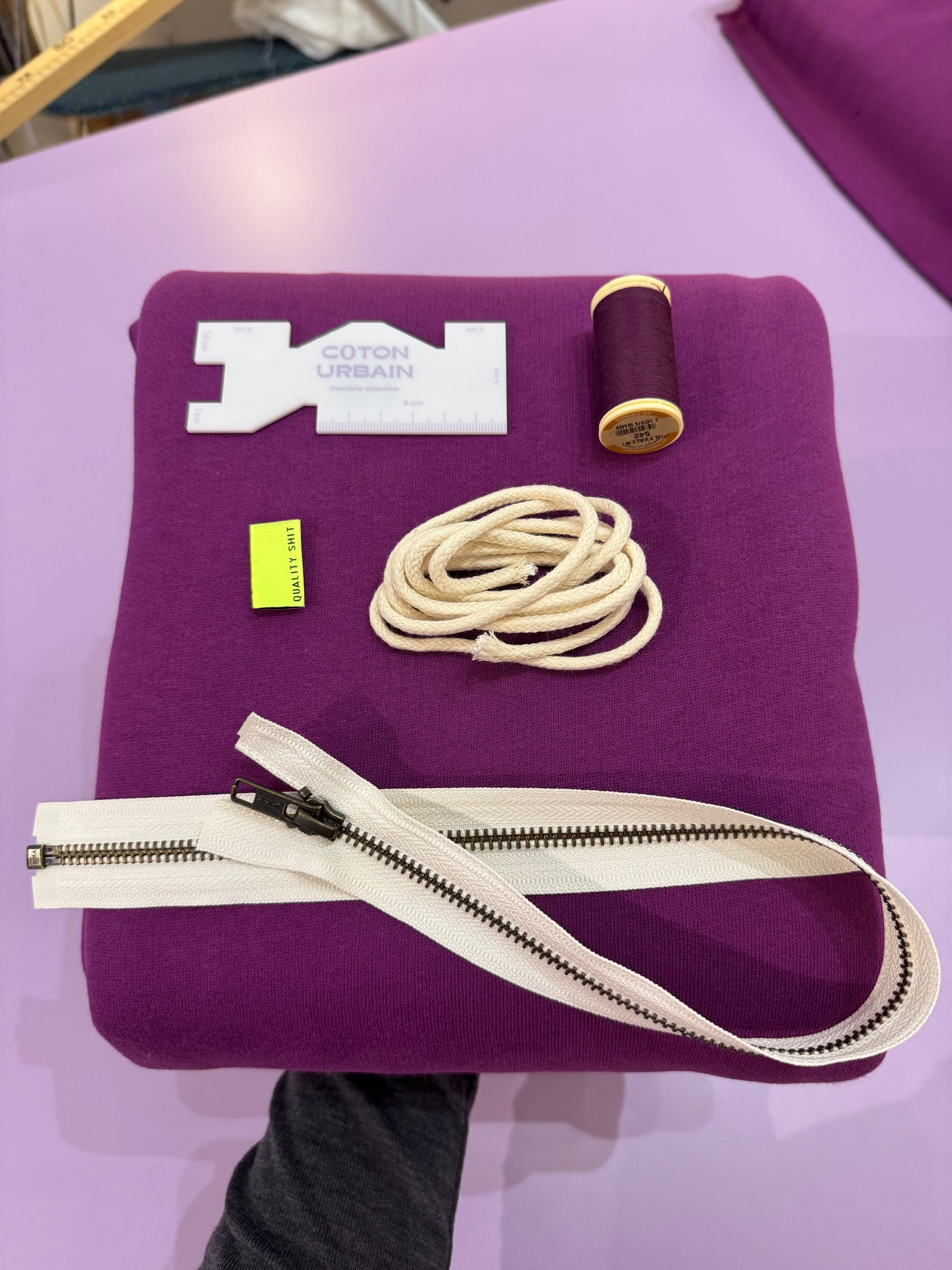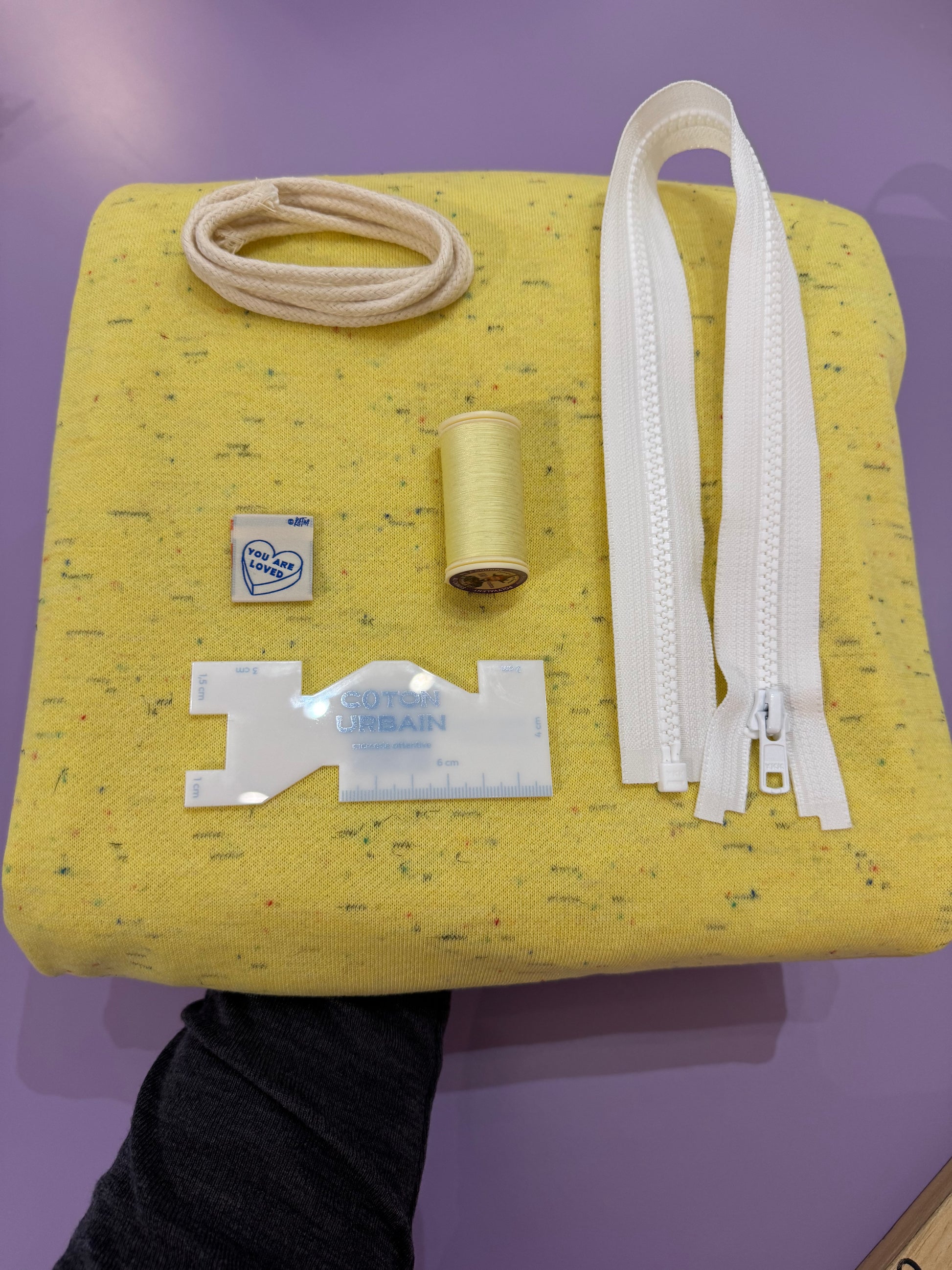 - Le coupon de tissu nécéssaire pour faire le sweat manches longues, capuche et zip