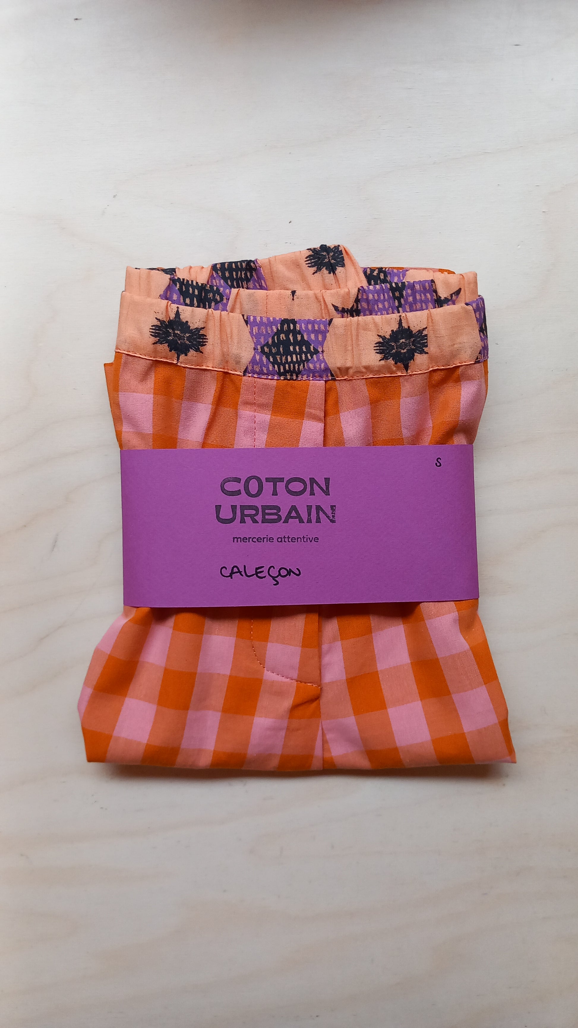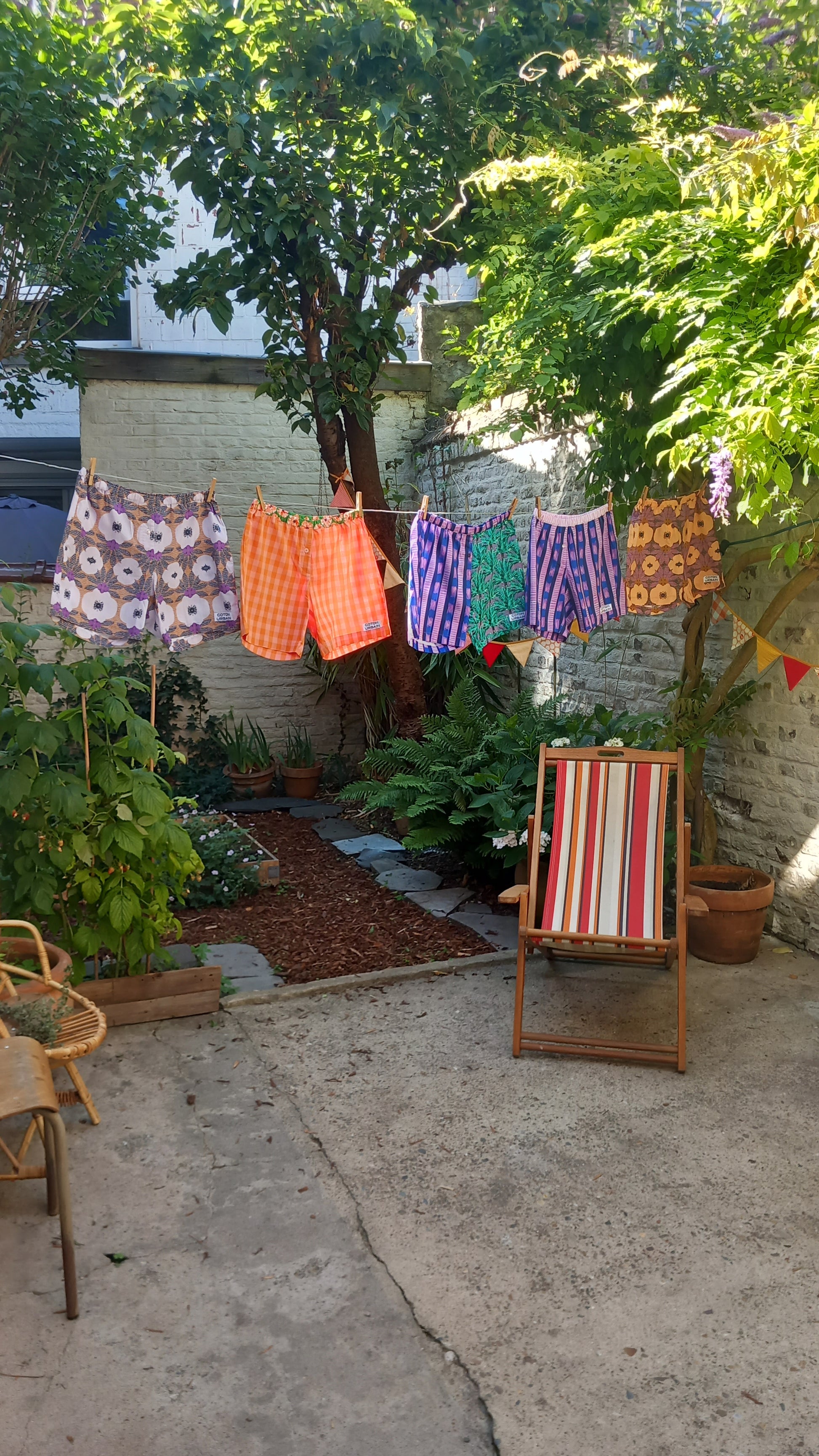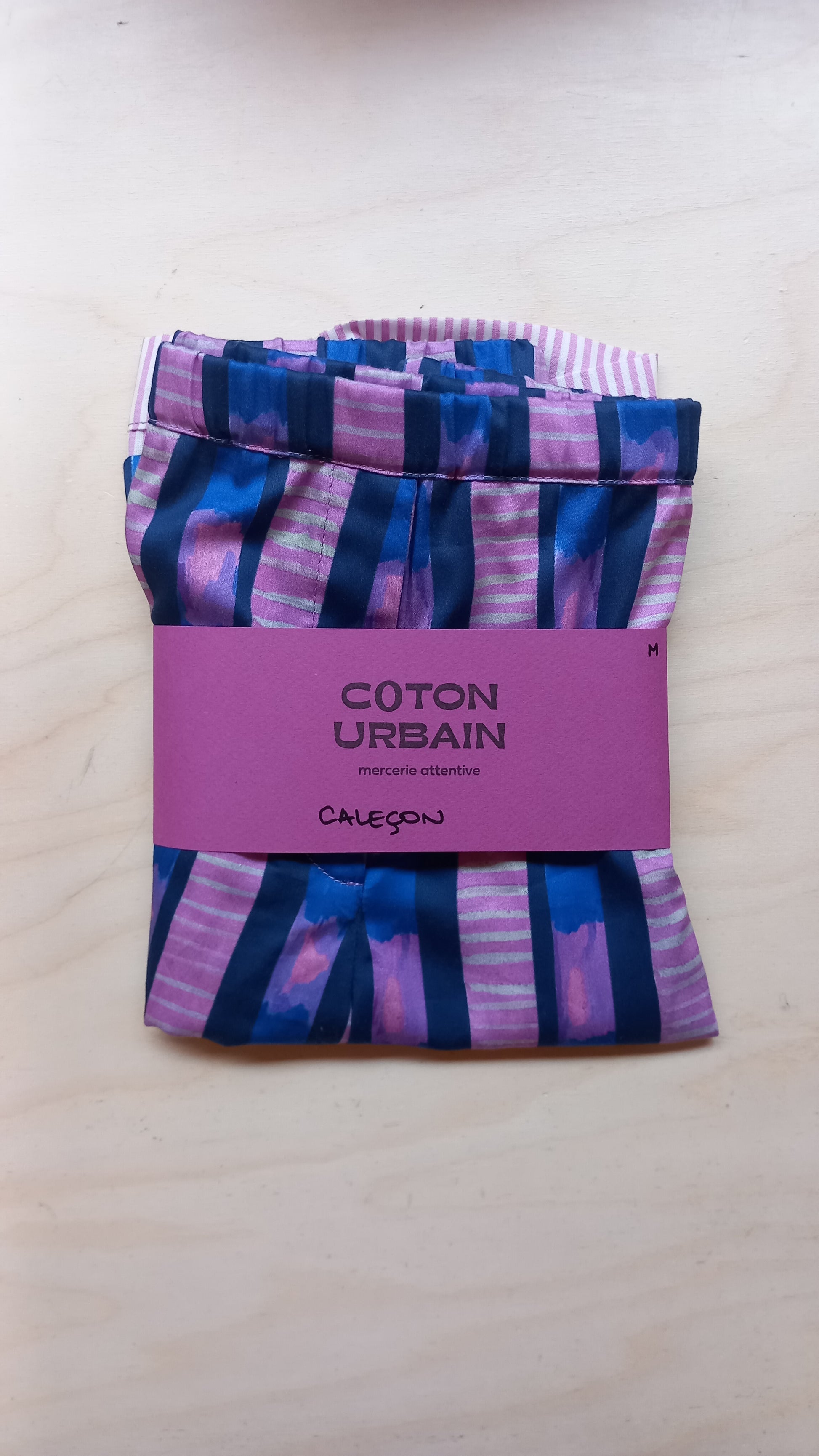 Les tissus viennent du magasin, et les caleçons on été cousu dans les ateliers couture de Step Métiers à Liège.
