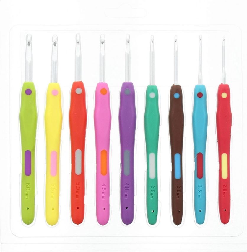 Manche ergonomique en ABS avec grip pour une prise en main agréable. Pointe en aluminium. Longueur totale du crochet : 13,5 cm. Numéros des crochets gravés sur le manche.