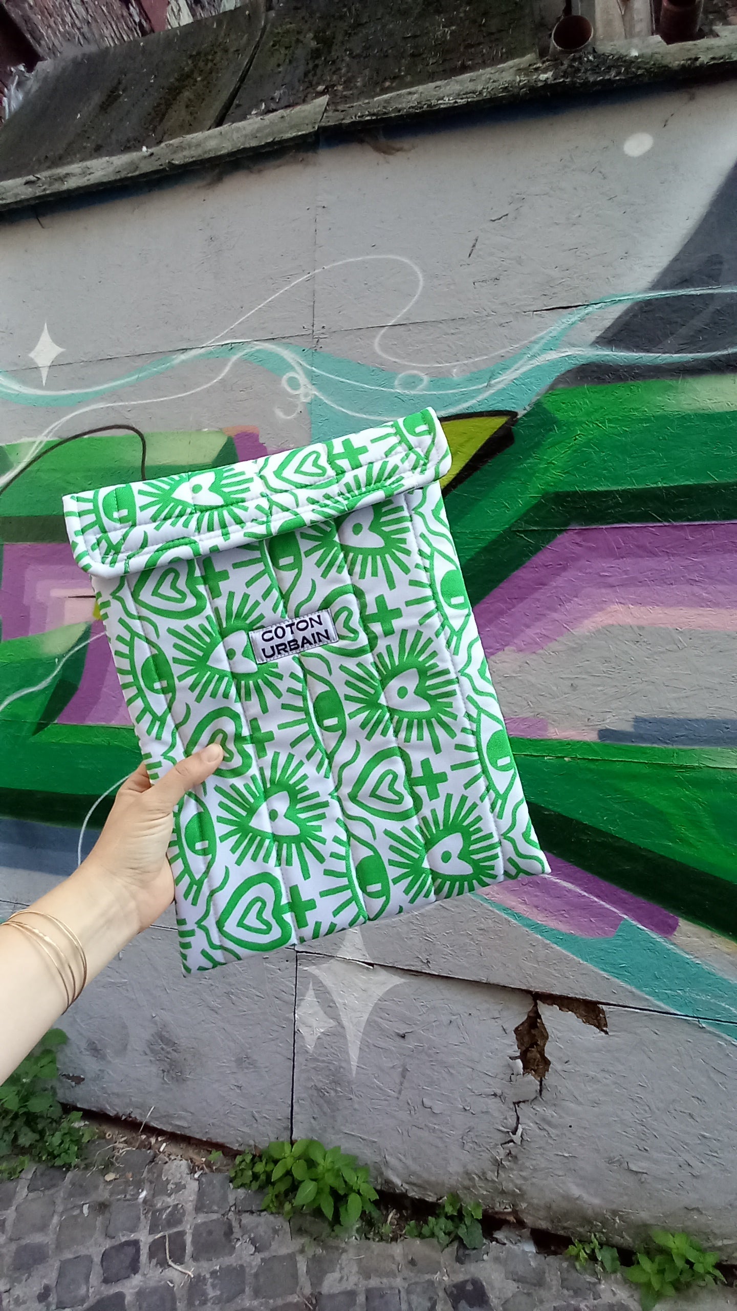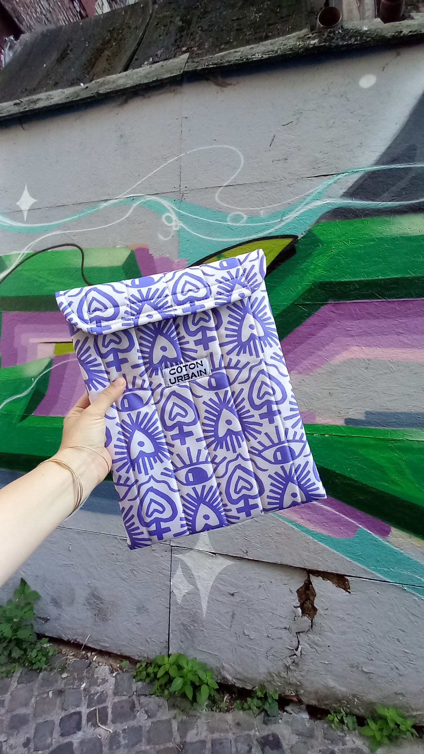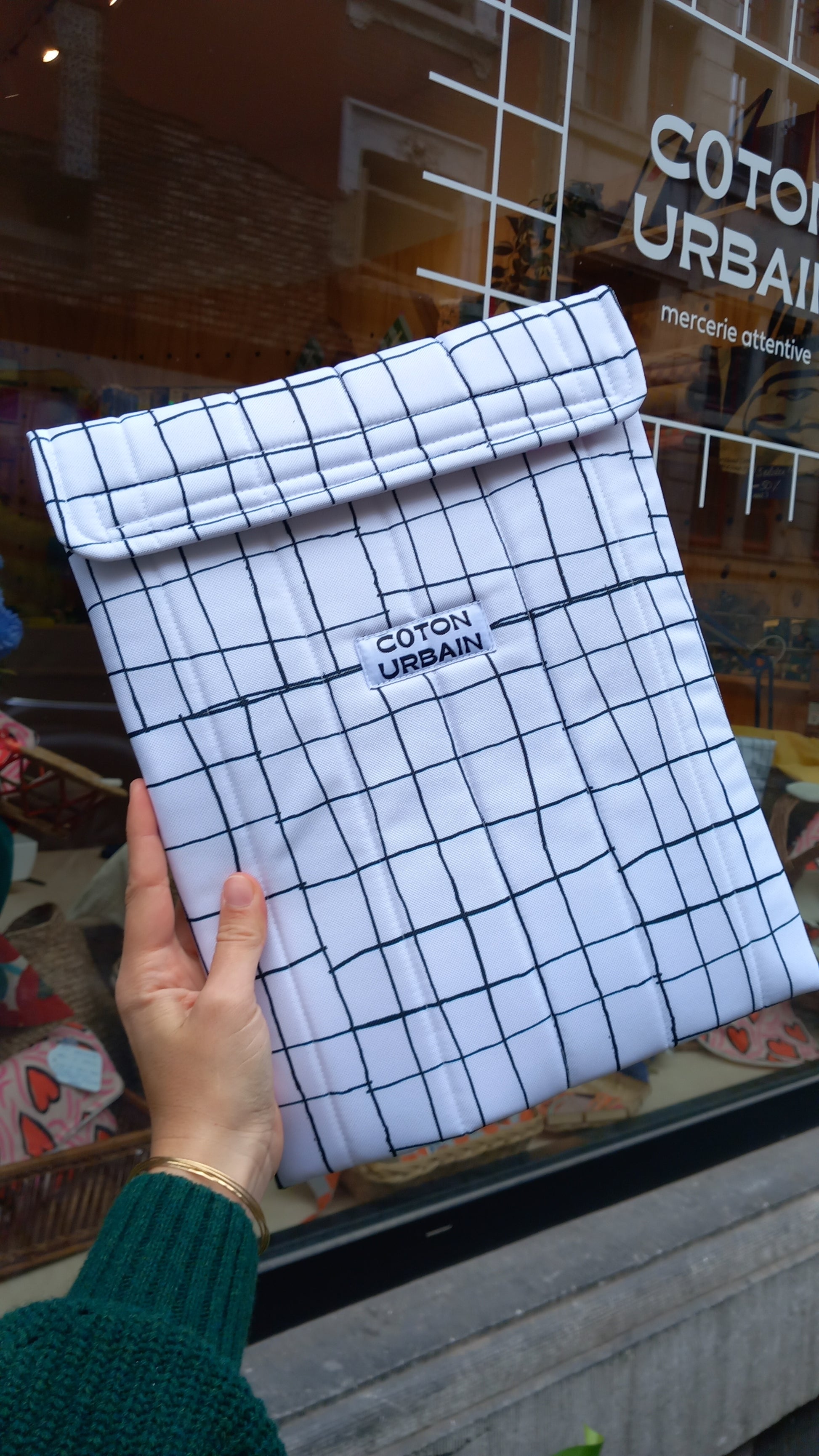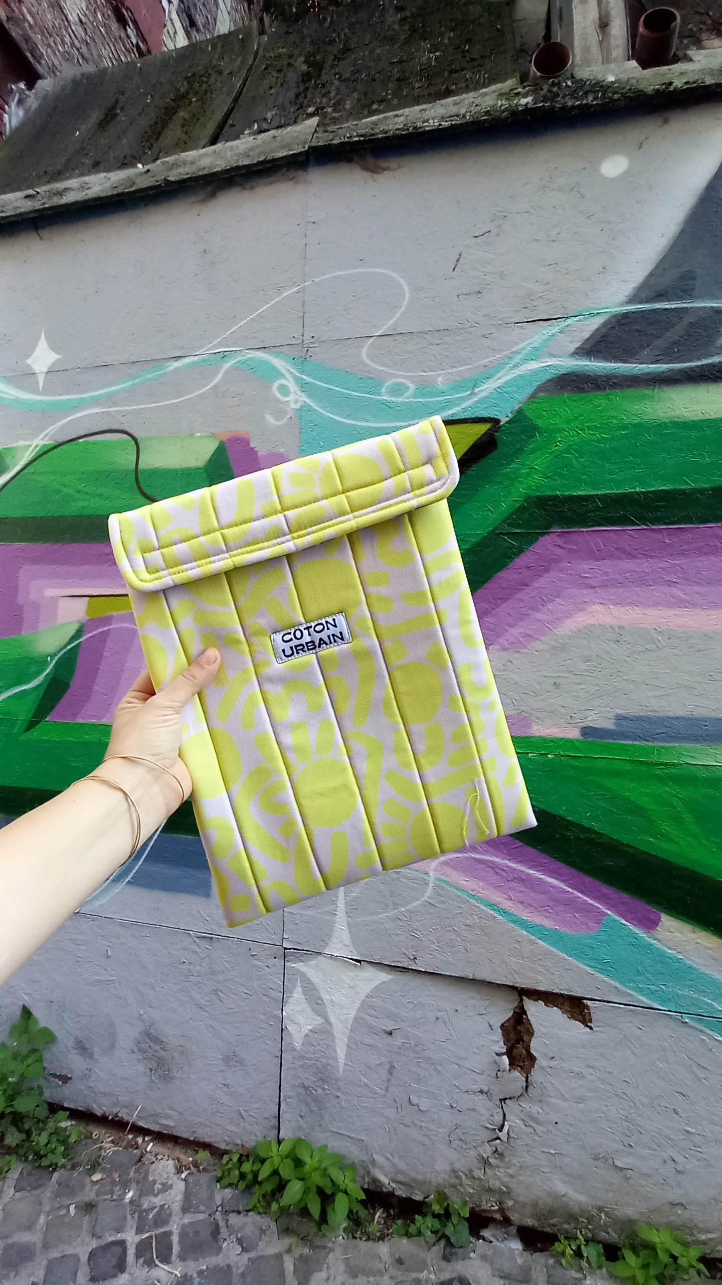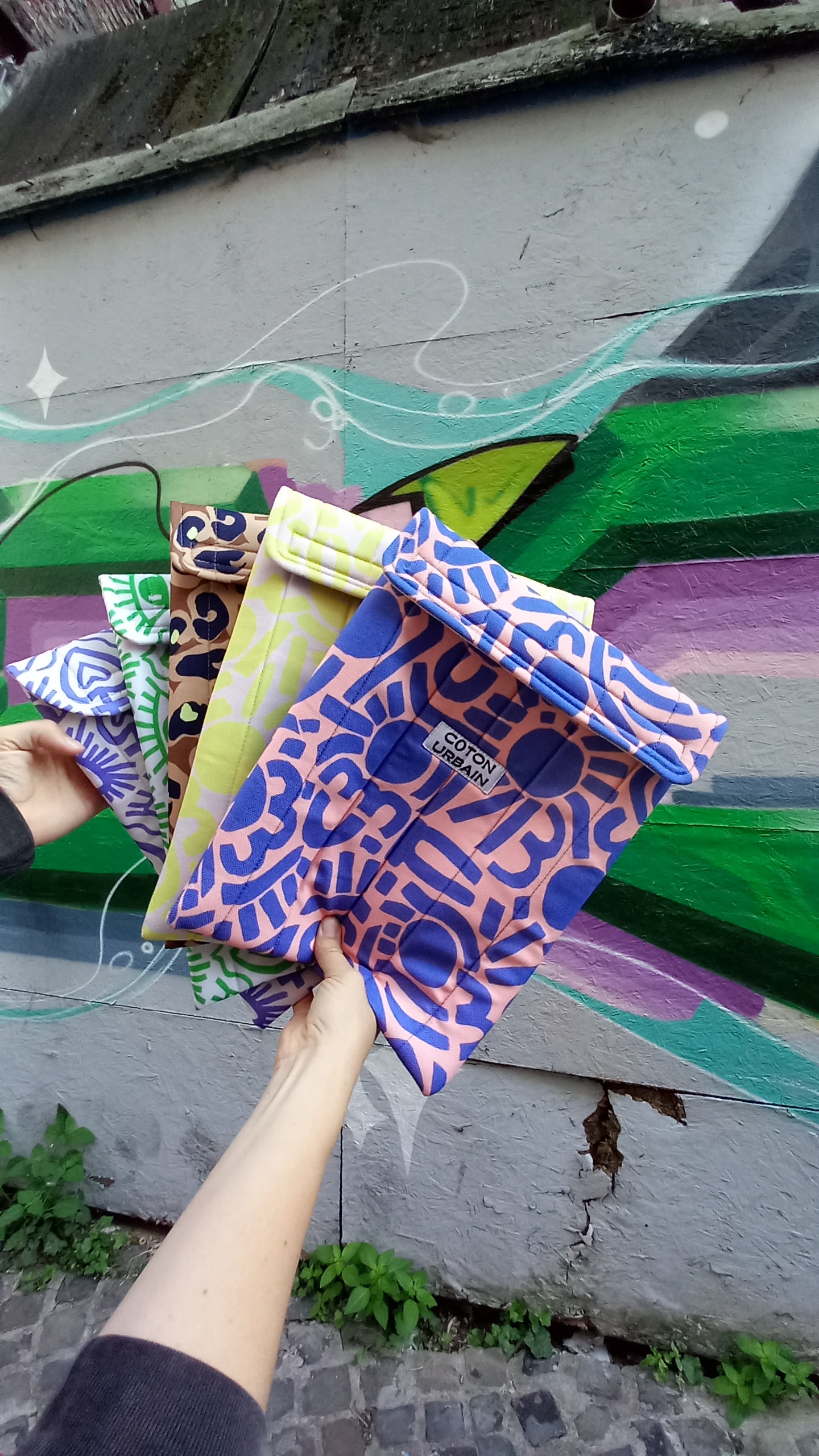Pochettes pour ordinateur Coton Urbain, réalisées à partir des superbes tissus Stephanie Piogé dans les ateliers de confection de chez Step Métiers à Liège.
