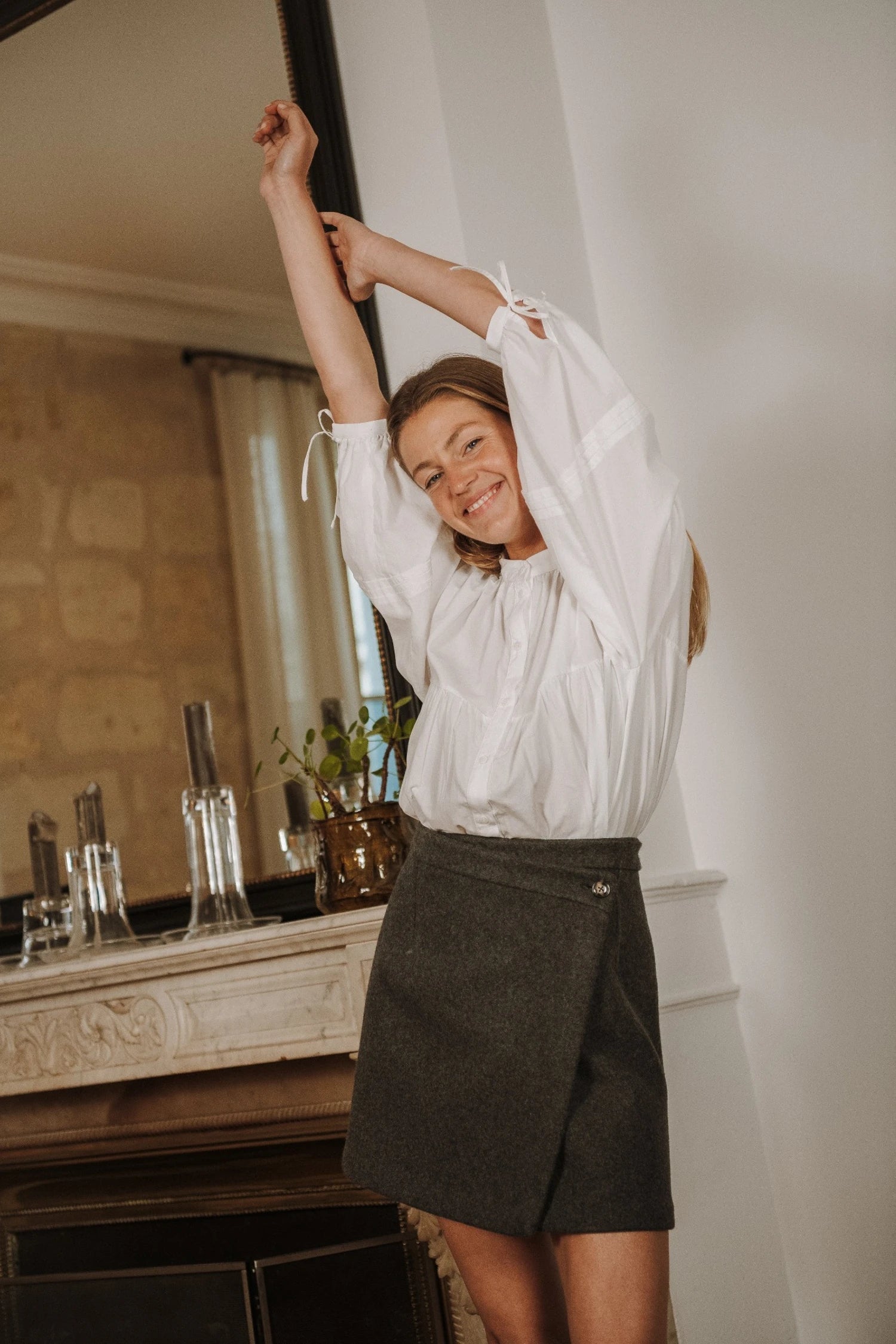 Découvrez le patron de notre jupe portefeuille Lisa, disponible en deux longueurs et trois options de fermeture.
