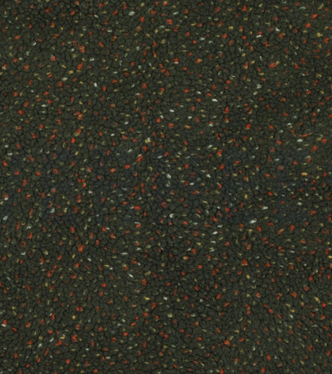 Tissu teddy petite bouclette tweed vert kaki foncé avec des touches d’orange